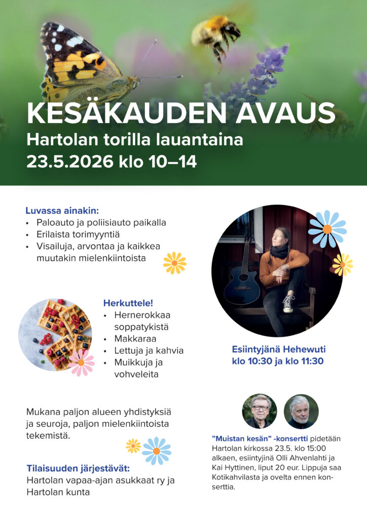 Hartolan kunta pyytää tarjousta markkinakentän, siihen liittyvien tiealueiden, S-marketin, Hartolan Auto ky:n, Valtikan ja ent. K-marketin liiketalojen piha-alueiden sekä yleisöwc:n siivouksesta.