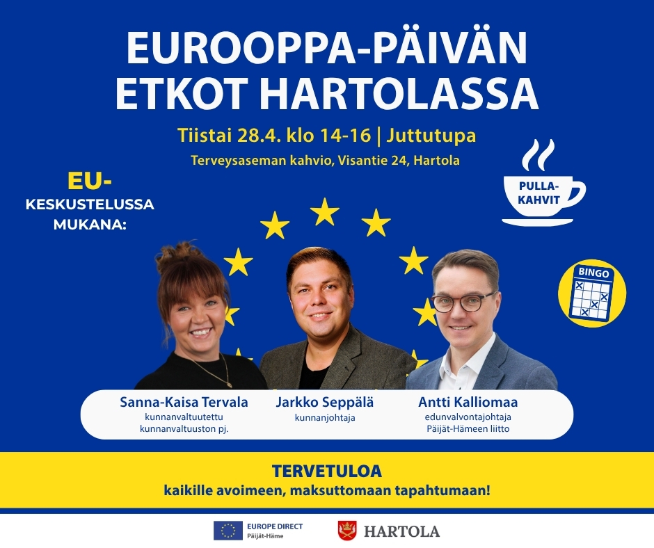Alue- ja kuntavaalit 2025 toimitetaan sunnuntaina 13.4.2025. Ennakkoäänestys 2.–8.4.2025 Yleinen ennakkoäänestyspaikka on Hartolan kunnanvirasto, Kuninkaantie 16, Hartola