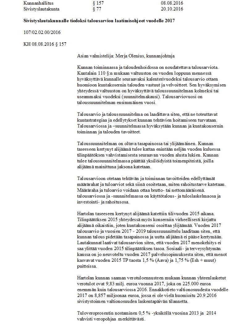 Pöytäkirja 20.10.2016 Pykälä 77