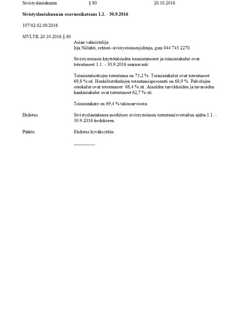 Pöytäkirja 20.10.2016 Pykälä 80