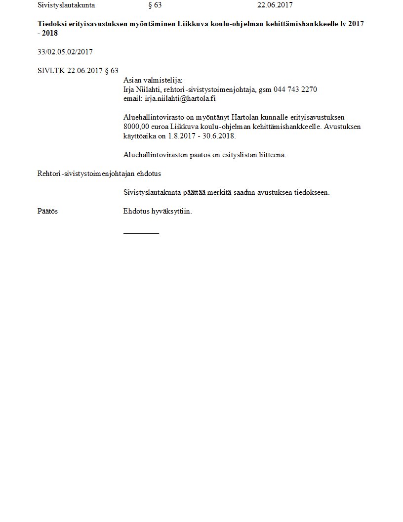 Pöytäkirja 22.06.2017 Pykälä 63