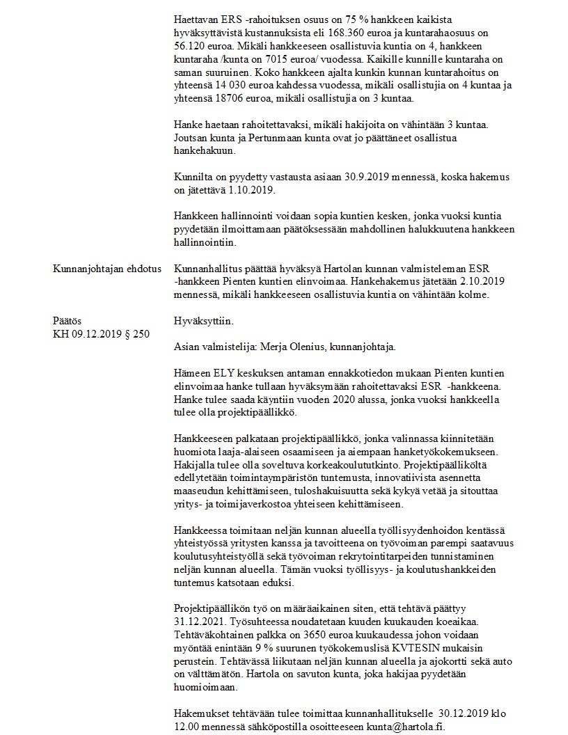 Pöytäkirja 09.12.2019/Pykälä 250