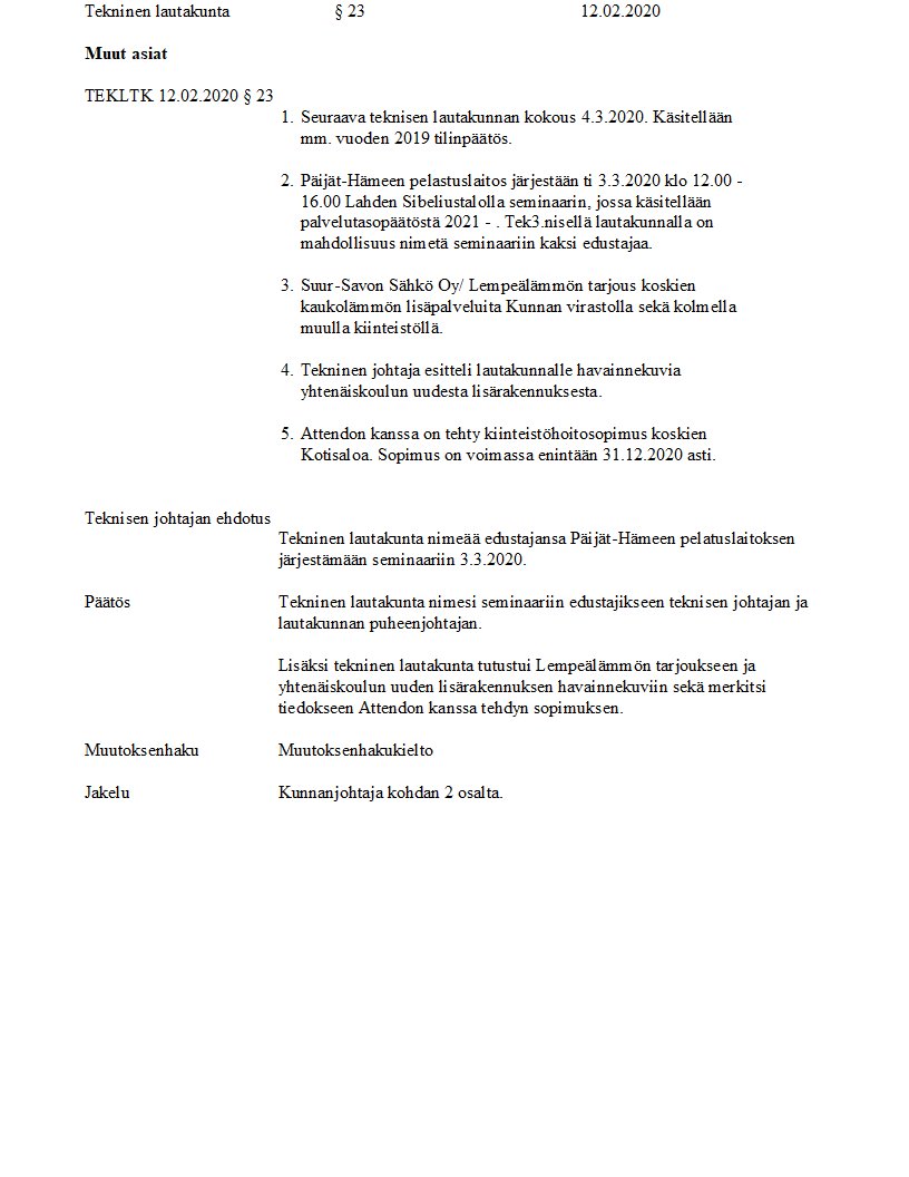 Pöytäkirja 12.02.2020/Pykälä 23
