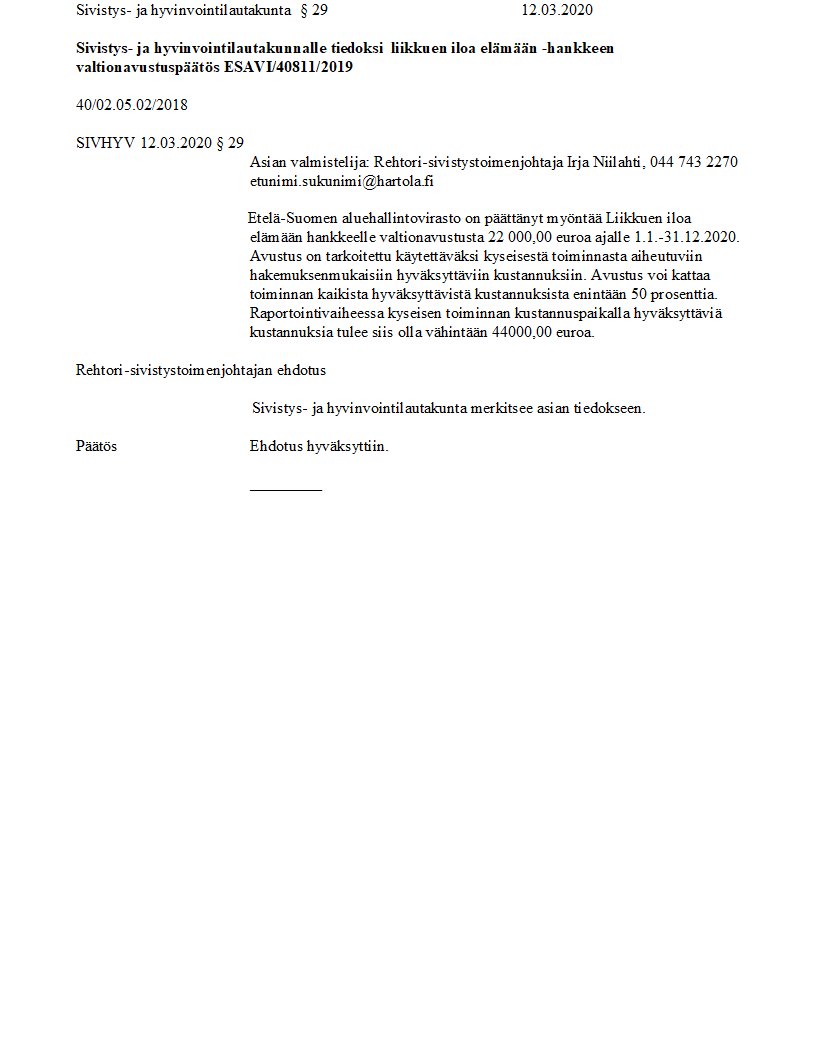 Pöytäkirja 12.03.2020/Pykälä 29