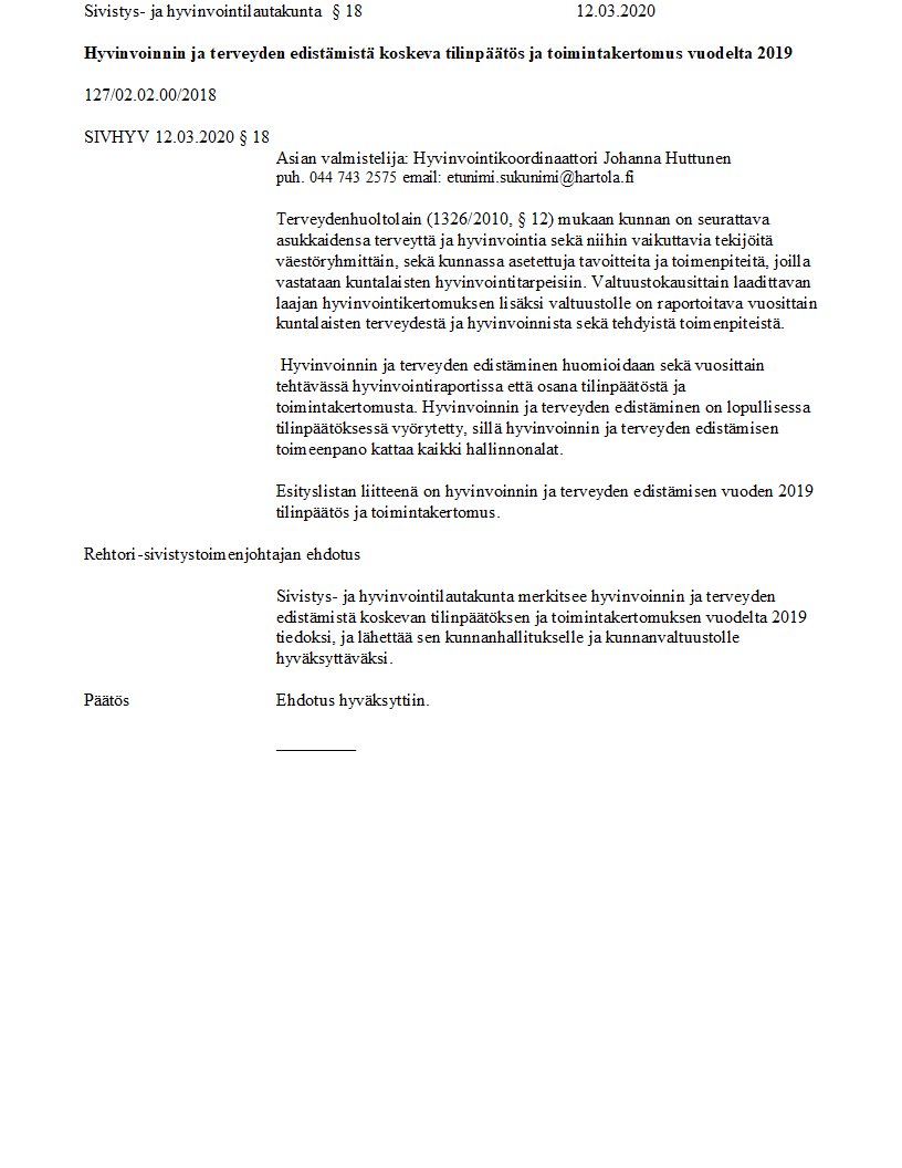 Pöytäkirja 12.03.2020/Pykälä 18