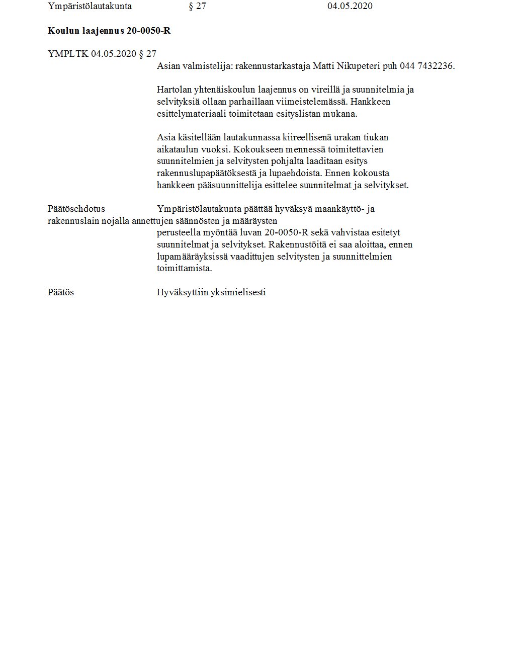 Pöytäkirja 04.05.2020/Pykälä 27