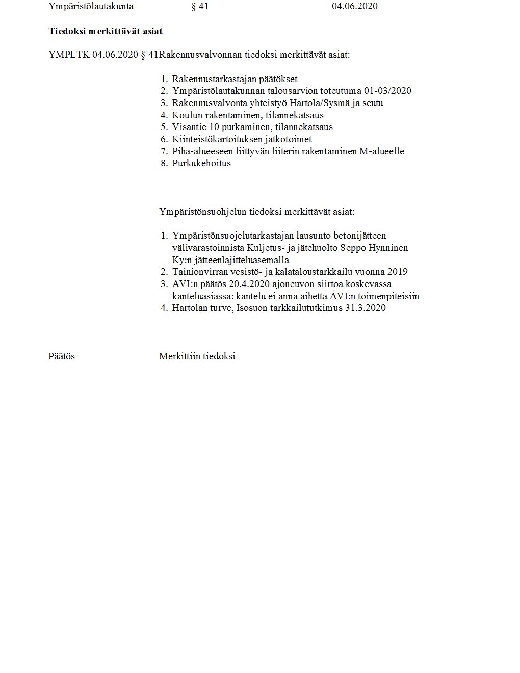 Pöytäkirja 04.06.2020/Pykälä 41