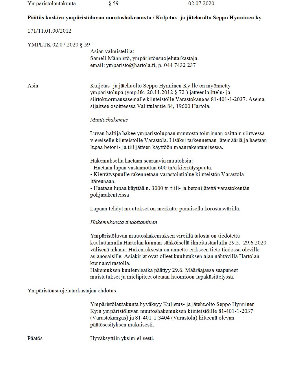 Pöytäkirja 02.07.2020/Pykälä 59