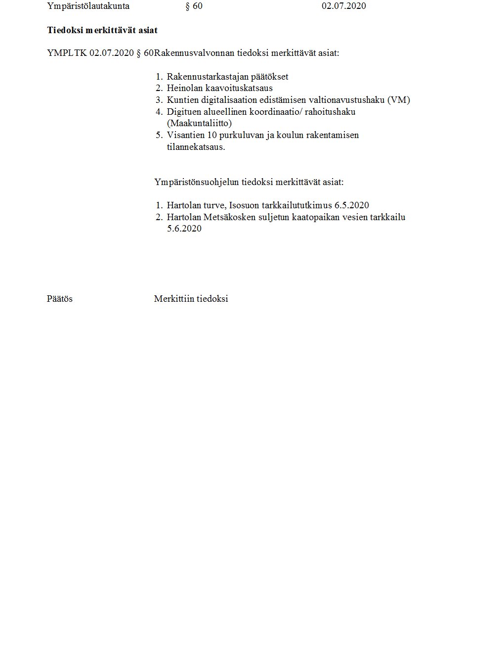 Pöytäkirja 02.07.2020/Pykälä 60