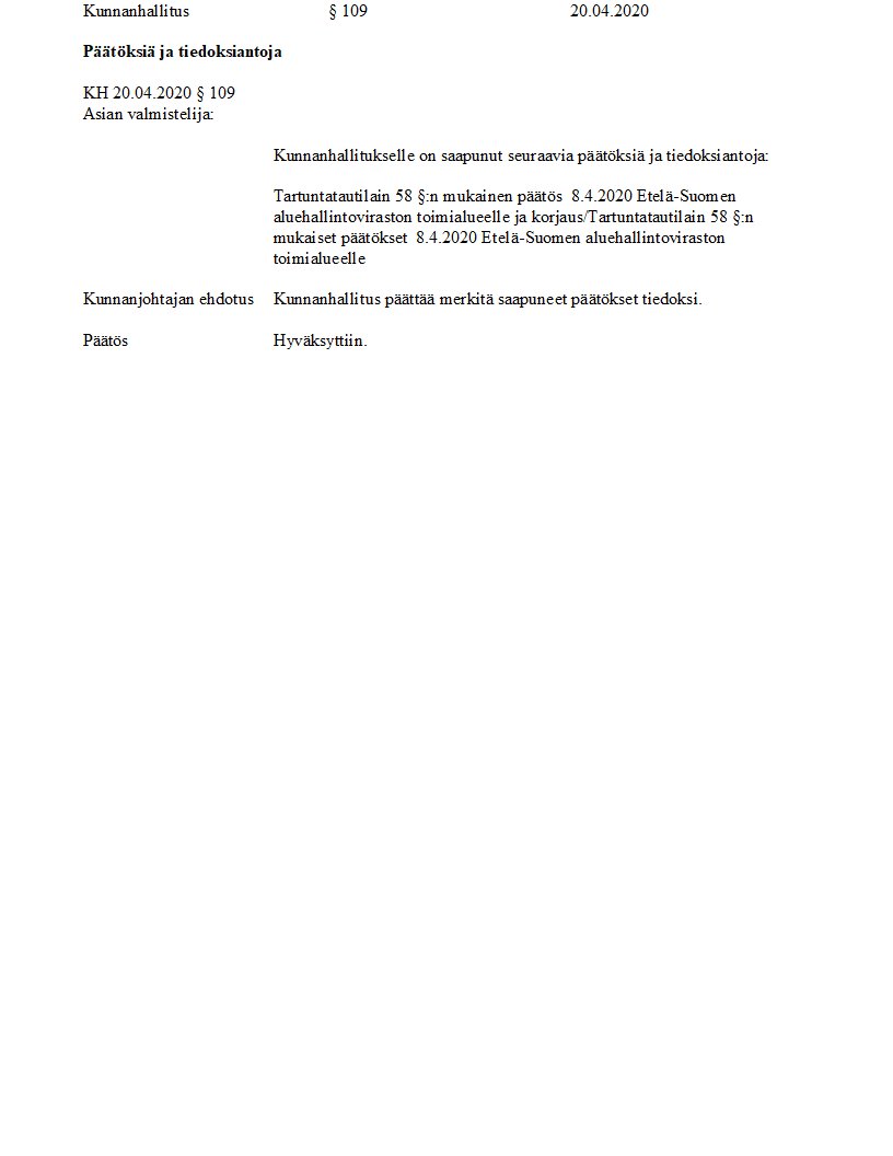Pöytäkirja 20.04.2020/Pykälä 109