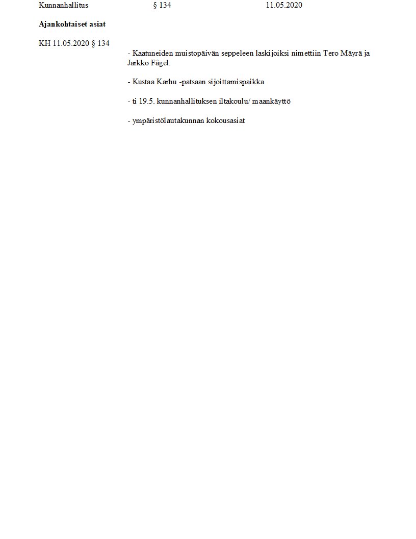 Pöytäkirja 11.05.2020/Pykälä 134