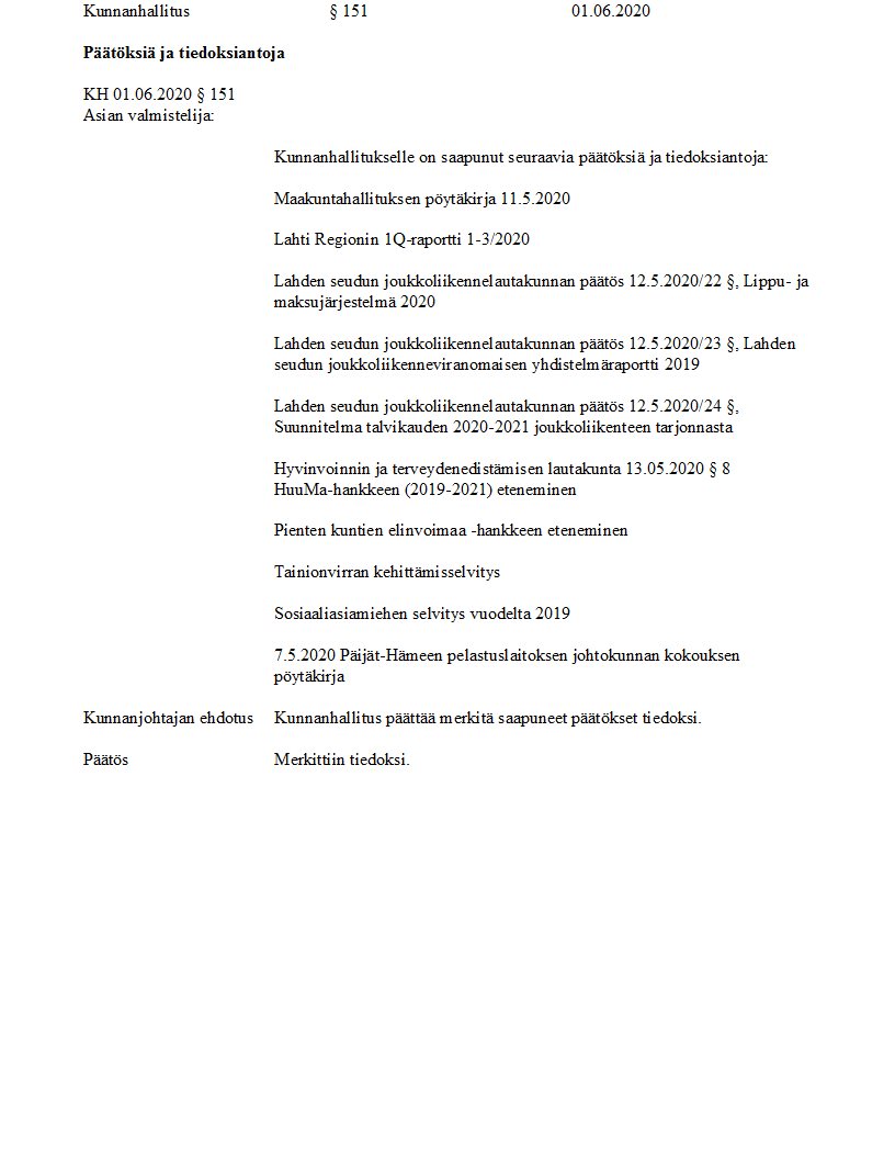 Pöytäkirja 01.06.2020/Pykälä 151