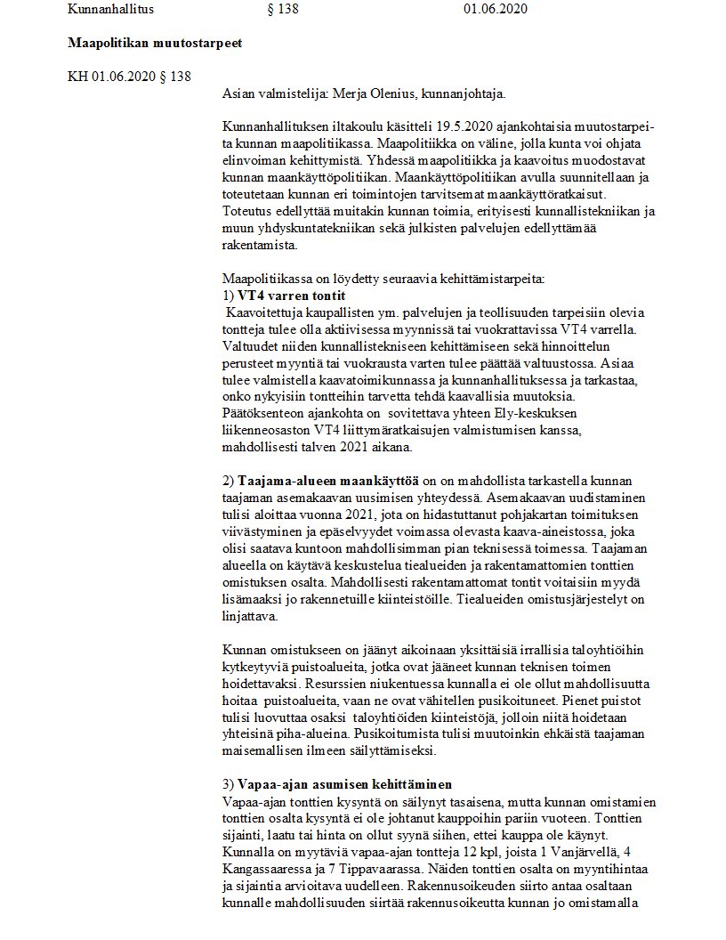 Pöytäkirja 01.06.2020/Pykälä 138