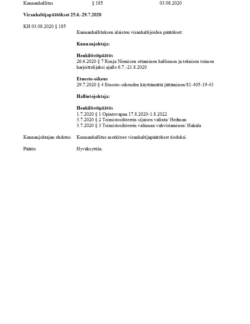 Pöytäkirja 03.08.2020/Pykälä 185