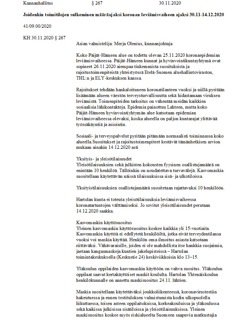 Pöytäkirja 30.11.2020/Pykälä 267