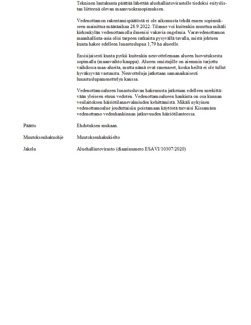 | Lausunto Kissamäen vedenottamon lupahakemuksesta/ Hämeen ELY-keskus | |