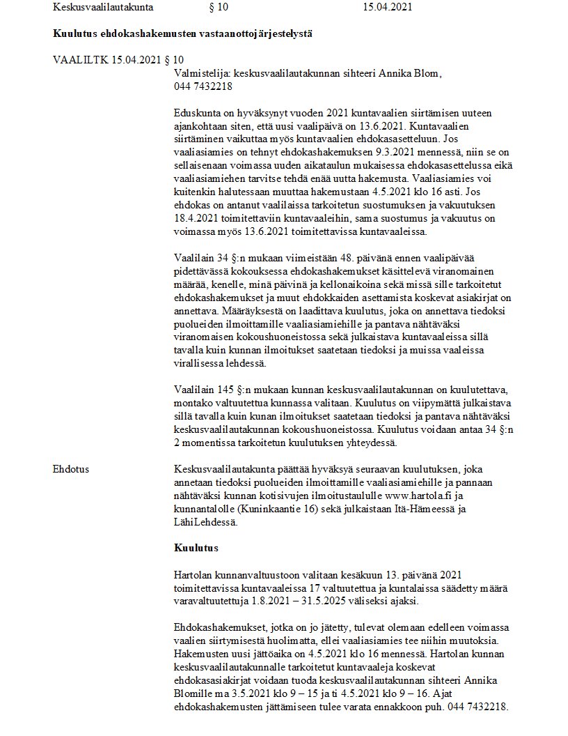 Pöytäkirja 15.04.2021/Pykälä 10