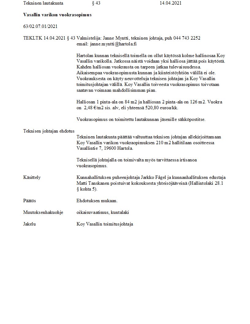 Pöytäkirja 14.04.2021/Pykälä 43