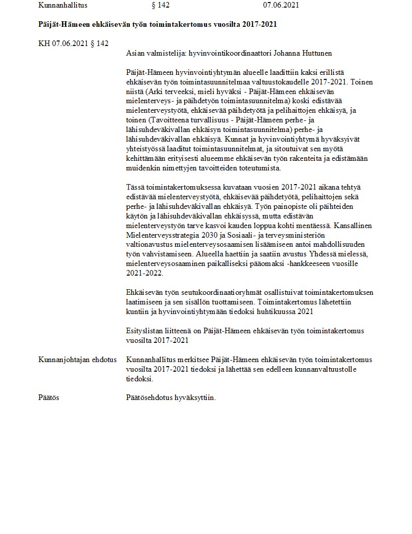 Pöytäkirja 07.06.2021/Pykälä 142