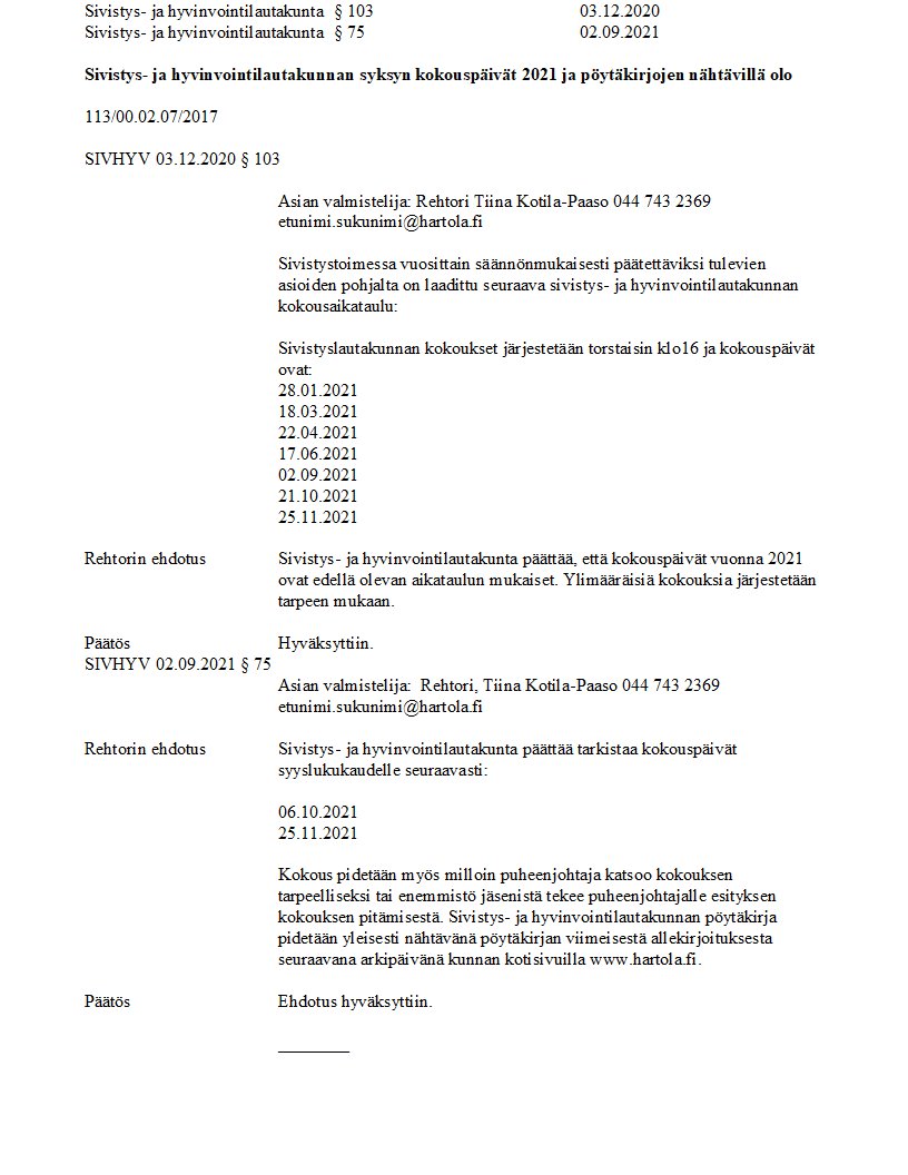 Pöytäkirja 02.09.2021/Pykälä 75