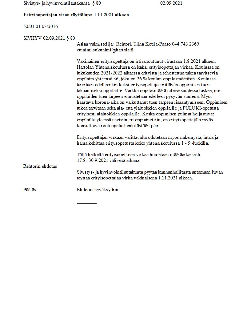 Pöytäkirja 02.09.2021/Pykälä 80