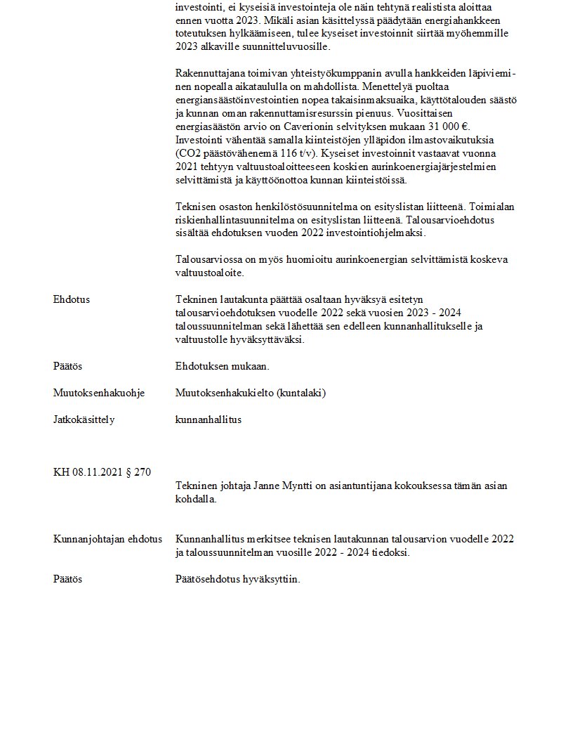 | Investointiohjelma TA2022 / Tekninen lautakunta | |