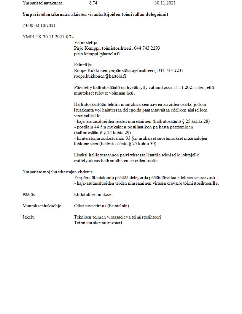 Pöytäkirja 30.11.2021/Pykälä 74